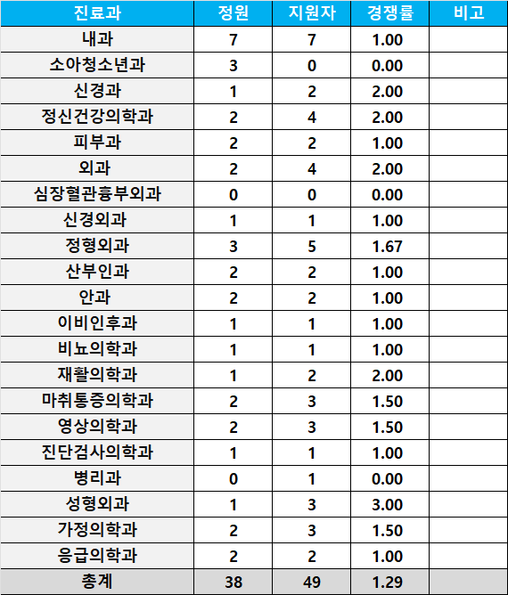 [2024년도 상반기 레지던트 지원현황] 중앙대학교병원