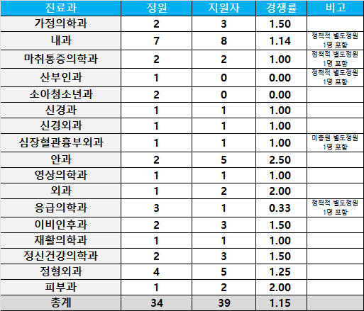 [2024년도 상반기 레지던트 지원현황] 한림대성심병원