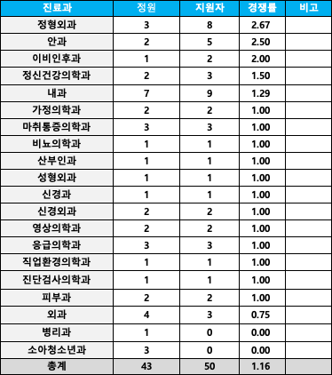 [2024년도 상반기 레지던트 지원현황] 조선대학교병원