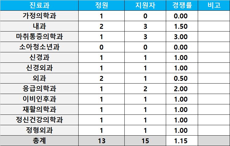 [2024년도 상반기 레지던트 지원현황] 가톨릭관동대 국제성모병원