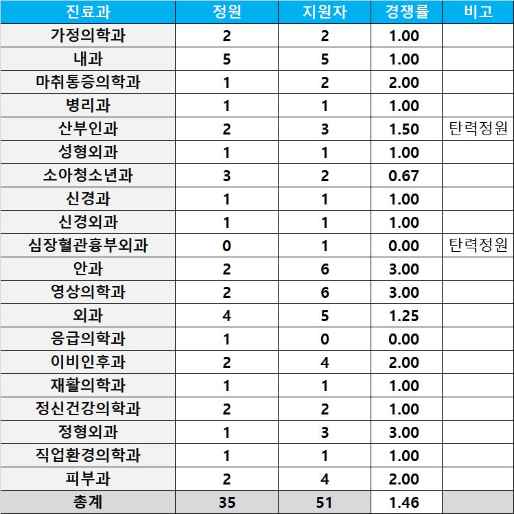 [2024년도 상반기 레지던트 지원현황] 강북삼성병원