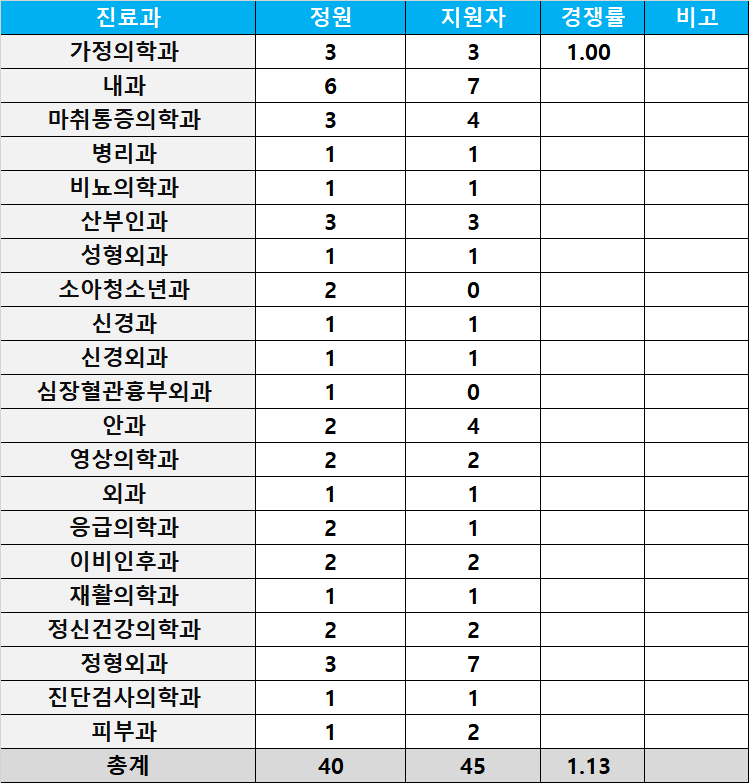 [2024년도 상반기 레지던트 지원현황] 건국대학교병원