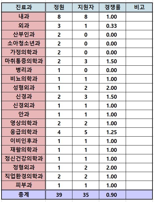 [2023년도 전반기 전공의 지원 현황] 순천향대천안병원