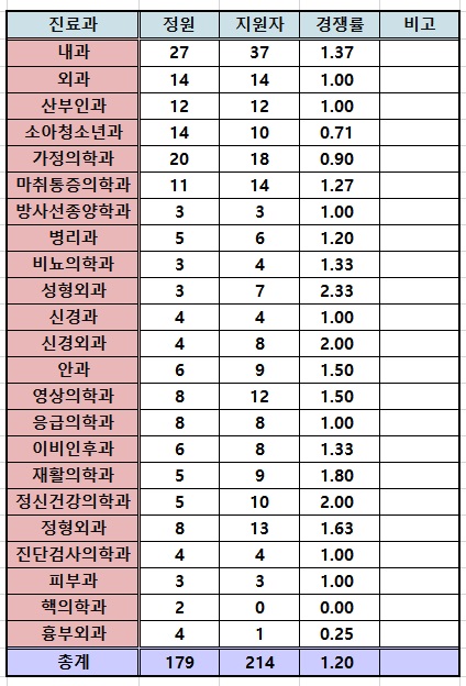 [2023년도 전반기 전공의 지원 현황] 서울대병원
