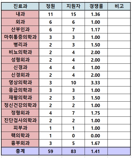 [2023년도 전반기 전공의 지원 현황] 분당서울대병원