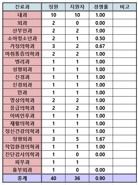 [2023년도 전반기 전공의 지원 현황] 순천향대서울병원