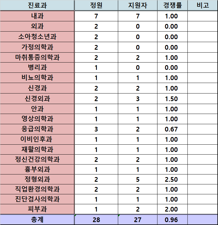 [2023년도 전반기 전공의 지원 현황] 울산대병원