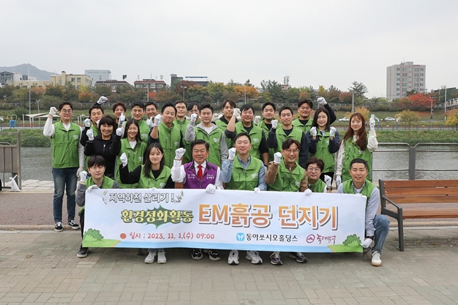 동아쏘시오홀딩스는 서울시 중랑천 환경정화를 위해 'EM흙공 던지기' 활동을 진행했다고 1일 밝혔다.