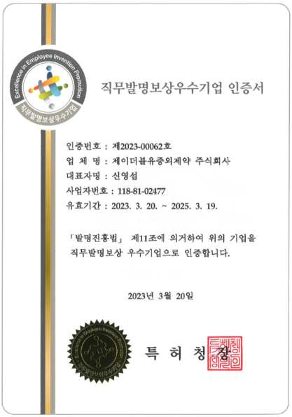 특허청과 한국발명진흥회가 주관하는 직무발명보상 우수기업 인증제는, 사내 직무 발명 시스템을 장려하고 발명자 대상 보상체계를 강화해 기업의 창조적 기술 개발을 유도하기 위한 제도다.