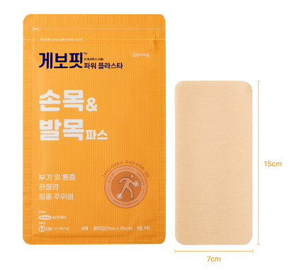해당 제품에 이어 이번에 출시된 게보핏 파워플라스타 손목&발목 전용 파스 역시 관절 통증 완화 효과가 뛰어난 ‘디클로페낙’을 주성분으로 한다.