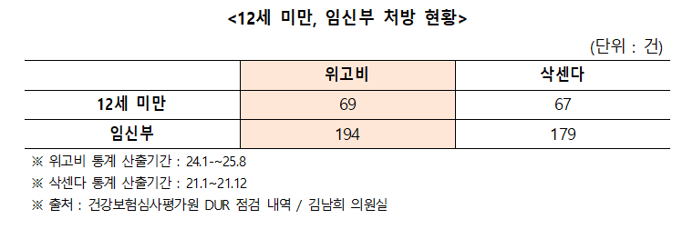 위고비가 우리나라에서 시판된 지난해 10월부터 올해 8월까지 만 12세 미만 어린이에게 69건이 처방됐고, 투약해선 안되는 임신부에게도 194건이나 처방됐다.
