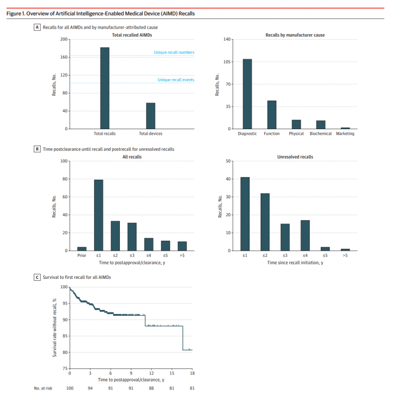 미국 존스홉킨스대와 예일대 연구진은 지난 2024년 11월까지 미국 식품의약국(FDA) 510(k) 경로로 허가된 인공지능 의료기기 950개를 대상으로 리콜 현황을 분석했다.