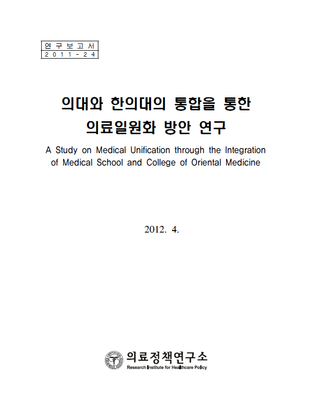 이에 지난 2012년 대한의사협회(의협) 의료정책연구소(現 의료정책연구원)이 발표한 '의대와 한의대의 통합을 통한 의료일원화 방안 연구보고서'가 소환됐다.
