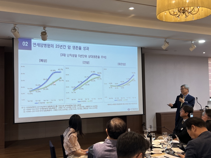 연세암병원에 따르면 2015~2019년 기준 폐암 5년 상대 생존율은 43.7%로 국내 평균(34.7%)보다 크게 높았다. 간암은 39.3%(국내 37.7%), 췌장암은 16.5%(국내 13.9%)를 기록했다.