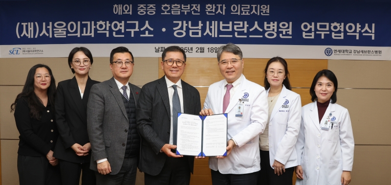 강남세브란스병원과 서울의과학연구소는 2월 18일 해외 중증 호흡부전 환자를 돕기 위한 업무협약을 체결했다. 협약을 통해 양 기관은 의료 사각지대에서 고통 받는 해외 중증 호흡부전 환자를 위해 ▲국내 초청 치료 ▲해외 의료기관 교육 ▲국제 의료 사회공헌사업 개발 및 시행 등 다양한 협력 활동을 적극 추진한다.