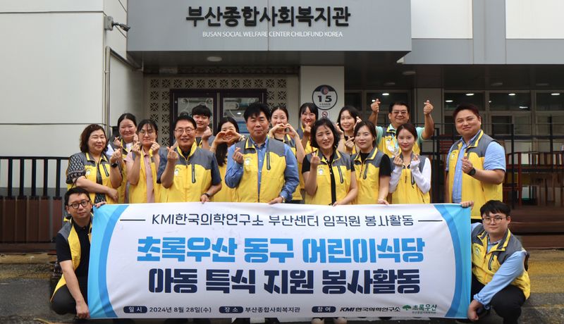 KMI한국의학연구소는 최근 취약계층 어린이들에게 건강 도시락을 제공하는 봉사활동을 진행했다다. KMI는 지역 내 조손가정, 한부모가정 자녀 등 취약계층 어린이들에게 건강한 먹거리를 제공하기 위해 부산종합사회복지관(초록우산 어린이재단)과 함께 행사를 마련했다. 임직원 20여 명은 부산종합사회복지관 1층에 위치한 ‘동구어린이식당 수정점’을 방문해 어린이 80여 명을 위한 도시락 준비, 포장 등 봉사활동을 진행했다. 아울러 어린이식당 운영에 도움을 주기 위해 주방용품도 후원했다.