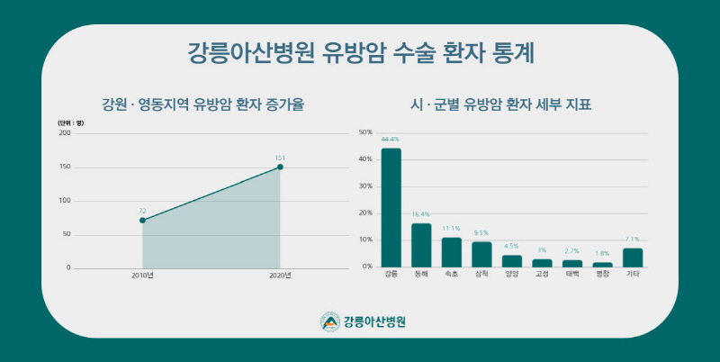 더불어 지난 2022년 강릉아산병원의 유방암 수술 환자 수는 205명으로 지속 상승 중이다.