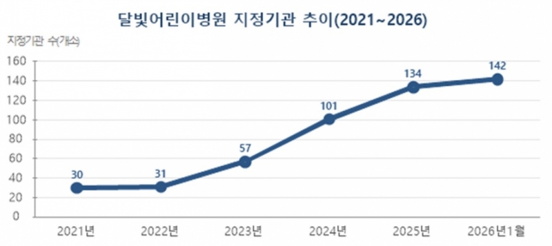 복지부에 따르면 2023년 말 57개소였던 달빛어린이병원은 약 3년간 지속적으로 증가해 2026년 1월 기준 142개소로 늘었다.