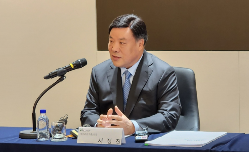 서정진 셀트리온 회장이 지난달 25일 합병 관련 기자 간담회를 열고 회사 비전을 공유하고 있다. 최진호 기자