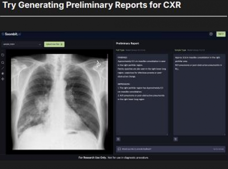 이 소프트웨어는 영상의학과 전문의를 대신해 흉부 엑스레이 영상을 기반으로 판독문 초안을 자동 생성한다.