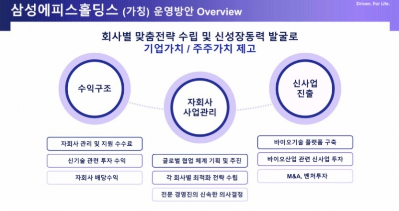 신설 지주사인 삼성에피스홀딩스는 바이오시밀러 전문기업 삼성바이오에피스를 완전 자회사로 편입해 세계 최고 수준의 바이오시밀러 그룹으로 성장시킨다는 계획이다.