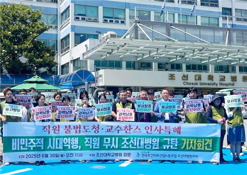 조선대병원 노조가 직원 간 무단 녹음 및 행정동 이전 추진, 인사 투명성 등과 관련해 병원을 규탄하고 나섰다.
