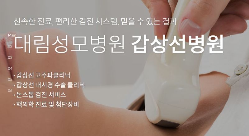 2005년 국내 종합병원 중 최초로 개소한 대림성모병원 갑상선병원은 갑상선외과, 내분비내과, 영상의학과, 핵의학과, 병리과 전문의들이 긴밀히 협진하며, 전문적인 치료를 제공하고 있다.