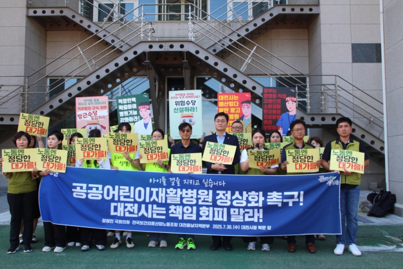 대전공공어린이재활병원 지부는 이날 대전 동구가 지역구인 장철민 의원(더불어민주당)과 대전시청 앞에서 기자회견을 개최했다.