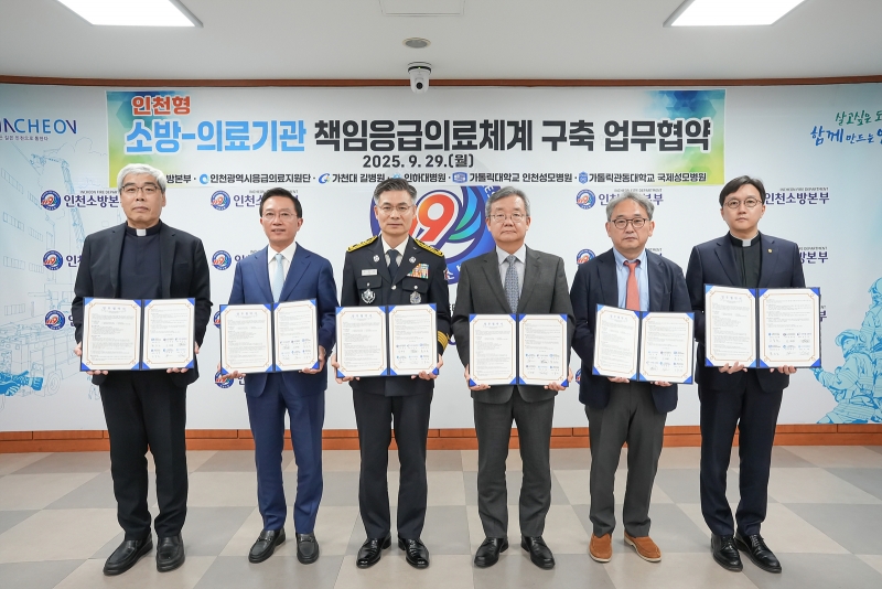 이번 협약에는 인천시 소방본부와 응급의료지원단을 비롯해 가톨릭관동대학교 국제성모병원, 가천대길병원, 인하대병원, 가톨릭대학교 인천성모병원 등 6개 기관이 함께했다.