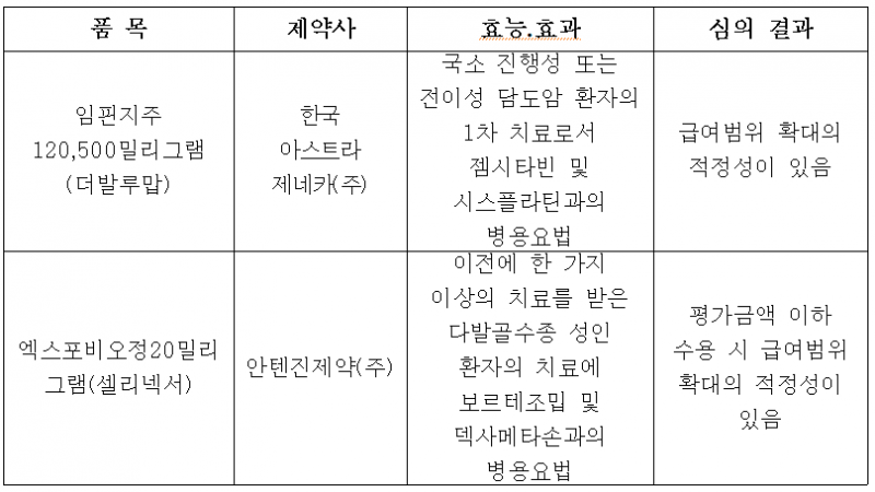 심평원, 제11차 약평위 심의 결과 공개…임핀지, 담도암 확대