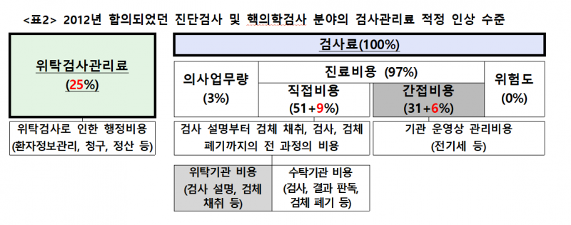 또한, 2012년 복지부와 의료계는 위탁검사관리료를 110% 중 25%로 합의한 바 있다