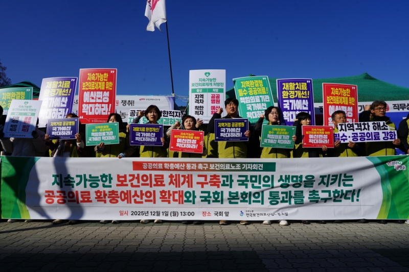 현재 국회에서 2026년 예산안에 대한 여야 간 막판 협상이 이어지고 있는 가운데 노조는 "공공의료 확충 예산이 최종 본회의에서 반드시 통과돼야 한다"고 강조했다.