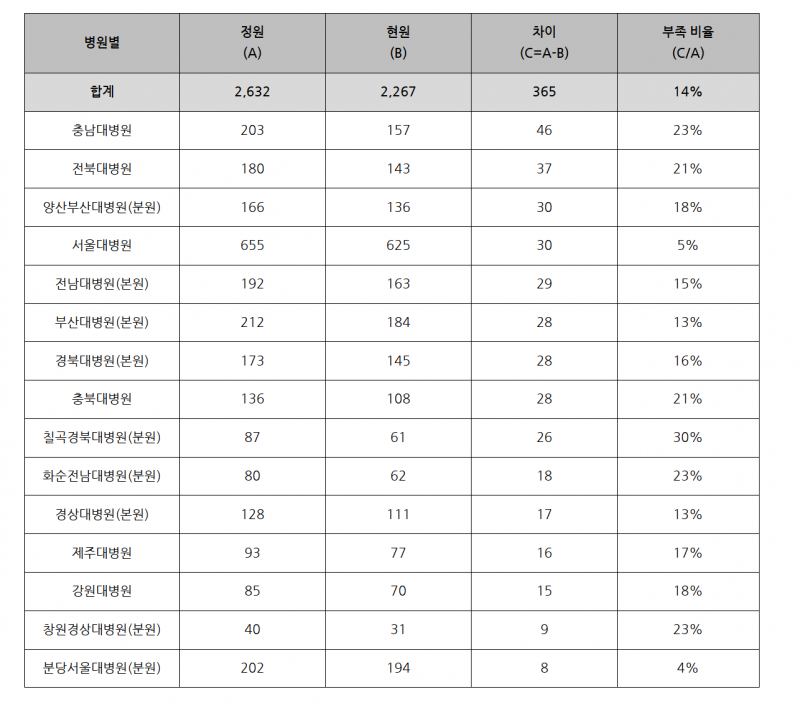 지방 전공의 위기, 국립대병원 통계에서 오래전부터 예고