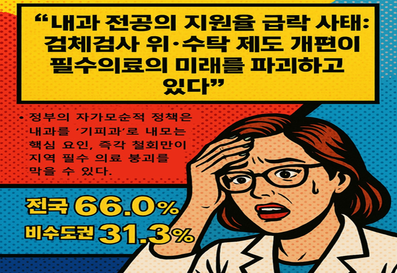 뿐만 아니라 “정부는 내과 전공의가 사라지는 심각한 위기를 직시하고, 필수의료 뿌리를 자르는 정책을 즉각 중단해야 한다”며 현장 의견을 반영한 정책 재설계를 촉구했다.