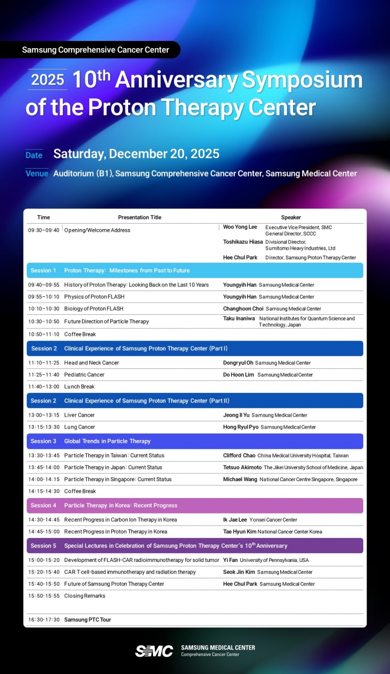 한편, 이번 심포지엄은 무료로 등록 가능하며 자세한 사항은 삼성서울병원 양성자치료센터로 문의하면 된다.