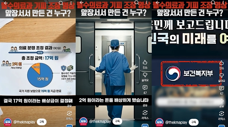 그런데 영상 내용이 의사들 사이에서 문제가 됐다. 대한의사협회는 해당 영상을 저장, 쇼츠로 재제작해서 복지부가 이러한 게시물을 게재했었다는 사실을 알렸다.