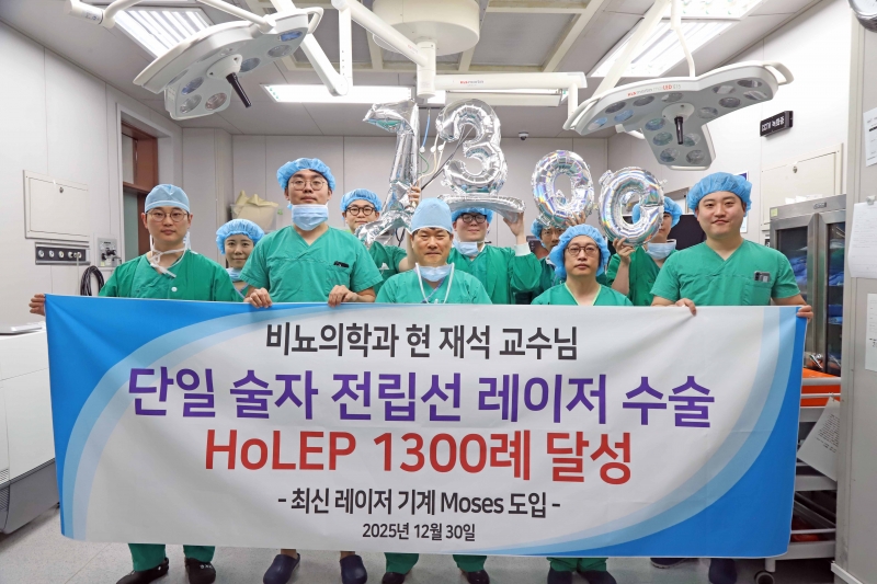 현재석 교수는 “홀렙수술은 전립선비대증 치료에서 수술적 완결성과 최소침습성을 동시에 만족시키는 수술 방식”이라며 “1300례 집도 경험을 바탕으로 환자들에게 더욱 안전한 홀렙 수술을 제공하고, 이를 후배 의료진과 공유해 국내 비뇨의학 수준을 높이는 데 힘쓰겠다”고 밝혔다.