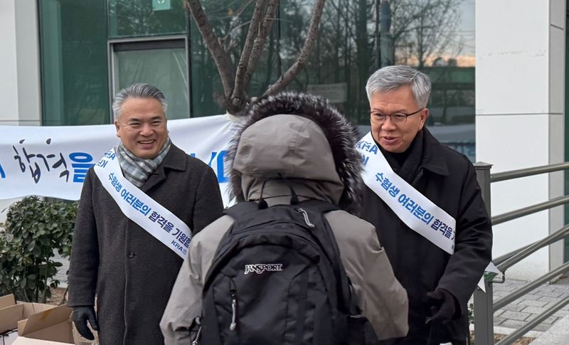 대한의사협회 김택우 회장과 임직원은 9일 오전 한국보건의료인국가시험원 서울 구로센터를 방문해 2026년 제90회 의사 국가시험에 응시한 예비 의사들을 격려했다.