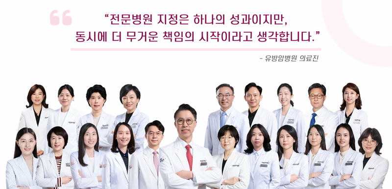 유수의 의료기관에서 유방암 전문 의료진을 영입했고, 장비·시설 확충을 통해 진단, 수술, 항암, 재활, 방사선치료까지 유방암 치료 전 과정을 아우르는 통합 진료체계를 완성했다.
