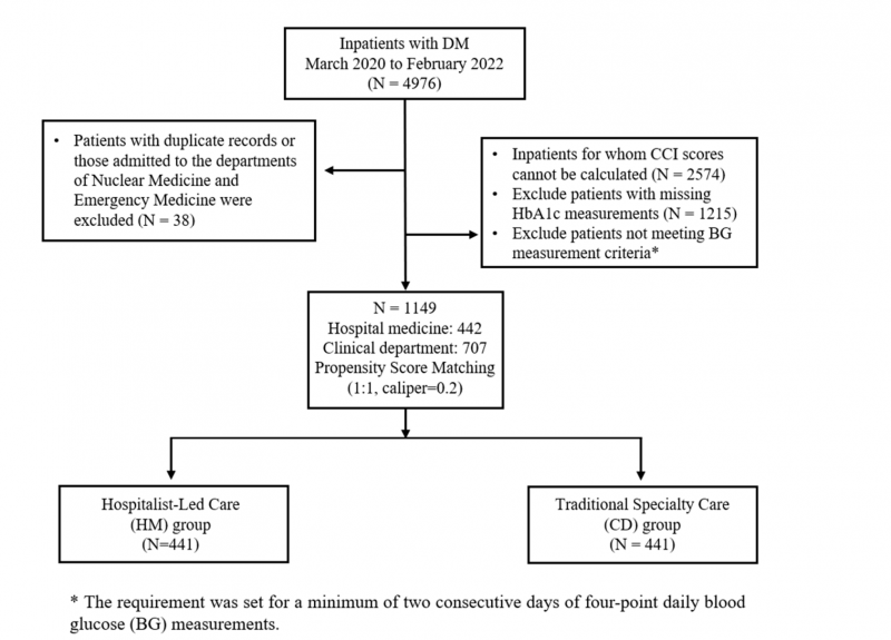 초기 모집단은 4976명이었으며 당화혈색소(HbA1c) 누락, 혈당 측정 기준 미충족, CCI(Charlson Comorbidity Index) 산출 불가 등 조건을 적용한 후 1149명이 최종 분석 대상에 포함됐다.