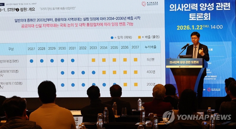 보건복지부가 1월 22일 웨스틴조선서울에서 개최한 의사인력 양성 관련 토론회에는 정부 산하 연구기관과 의료계, 시민·환자단체 관계자들이 참석해 의사 수급 추계 결과와 향후 양성·배치 방향을 놓고 의견을 나눴다.
