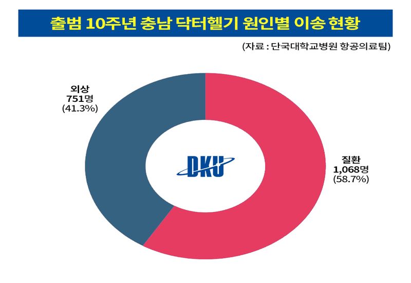 단국대병원(병원장 김재일)이 운영하는 ‘충남 응급의료 전용헬기(이하 충남 닥터헬기)’가 출범 10주년을 맞았다.