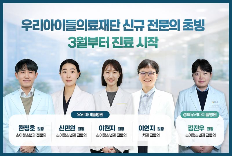 우리아이들의료재단(이사장 정성관)이 오는 3월부터 소아청소년 진료 역량 강화를 위해 신규 의료진을 초빙하고 본격적인 진료를 시작한다고 24일 밝혔다.