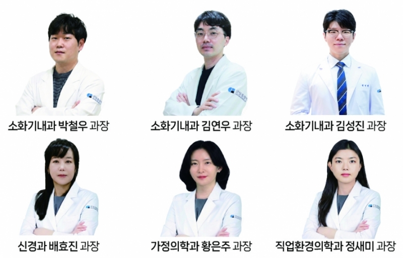 소화기내과 김연우 과장 역시 시술내시경(EMR·ESD)과 소화기 질환(식도, 위, 대장, 간, 췌장, 담낭, 담도)을 전문으로 하며, 김성진 과장은 소화기 질환 전반과 위·대장 내시경을 전담한다.