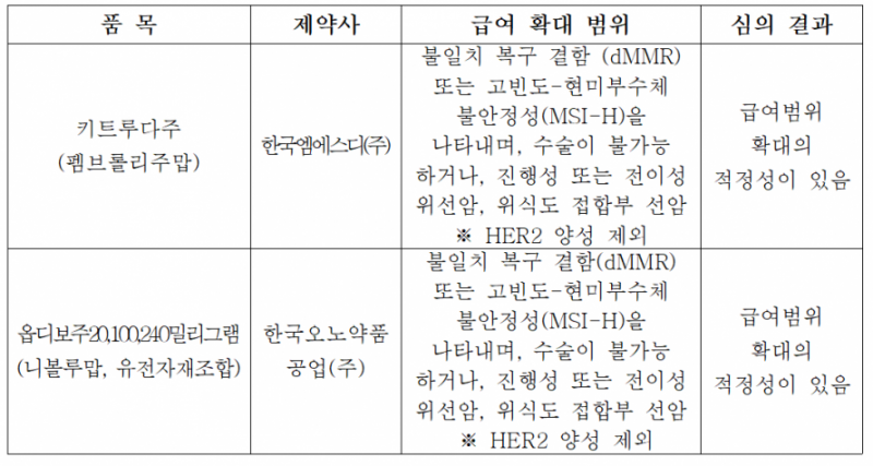 이번 결정으로 키트루다는 기존 급여 범위 외에 위암 치료 영역에서도 건강보험 적용을 위한 발판을 마련하게 됐다.