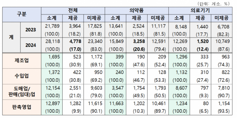 산업군별 주요 제공 유형에서는 의약품 업계가 대금결제 조건에 따른 비용 할인(55.1%)에 집중한 반면, 의료기기 업계는 견본품 제공(57.8%)의 비중이 가장 높아 품목 특성에 따른 확연한 영업 방식의 차이를 드러냈다.