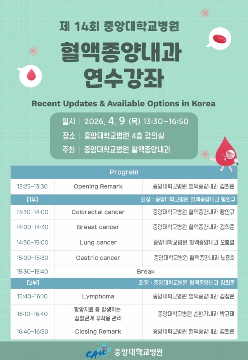 [4/9] 중앙대병원 ‘혈액종양내과 연수강좌’