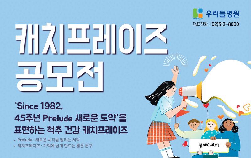 우리들병원(회장 이상호)이 개원 44주년을 맞아 오는 5월 10일까지 척추 건강 캐치프레이즈 공모전을 진행한다.