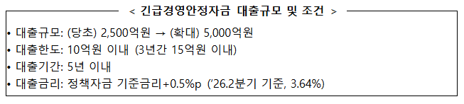 한편, 중소기업 정책자금에 대한 자세한 상담은 전국 34개 중소벤처기업진흥공단 지역본(지)부와 정책자금 안내 콜센터를 통해 받을 수 있으며, 중동전쟁 피해기업의 긴급경영안정자금 수시신청 및 접수는 4월 21일부터 진행된다.