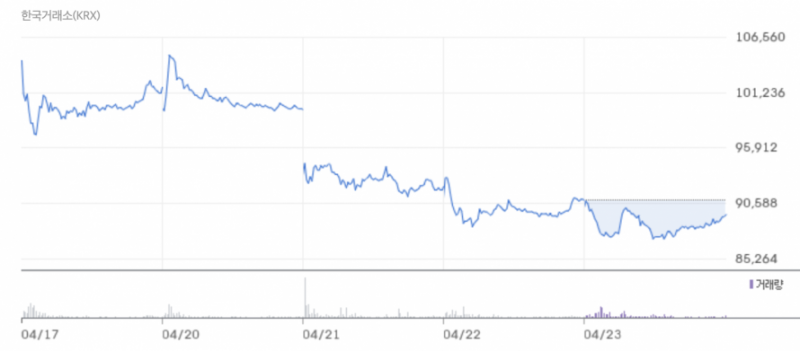 실제 23일 로킷헬스케어 주가는 전일 대비 1.54% 떨어진 8만9500원에 거래를 마쳤다. 지난 15일 10만 5700원, 16일 10만 3200원, 17일 10만 1900원, 20일 9만9600원으로 지속 감소세다.